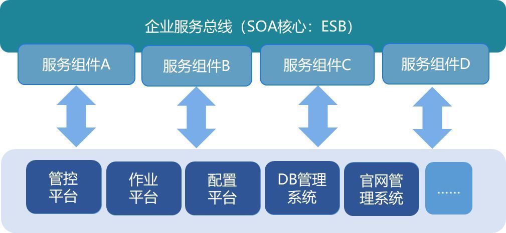 原子平臺越來越多,但原子平臺最終是用于消費和調用的。因此,進行了整體整合。整體架構采用SOA架構,服務模塊靈活采用微服務架構。