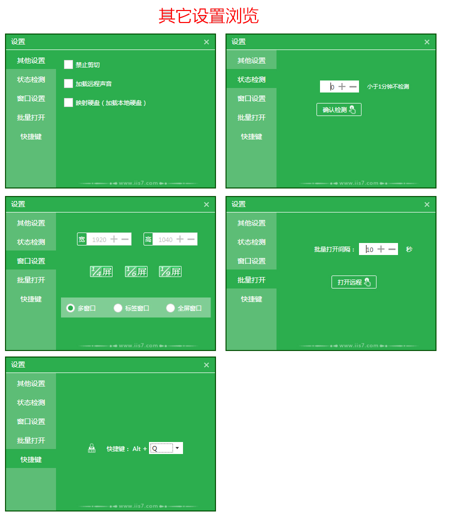 3、為了讓界面更美觀,分辨率、狀態(tài)檢測、批量開啟間隔等都統(tǒng)一在“其他設(shè)置”按鈕中。
