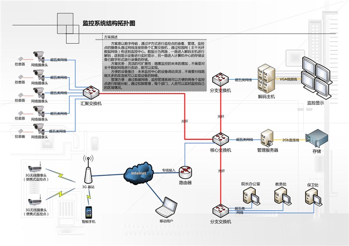 視頻監(jiān)控從第一代模擬視頻監(jiān)控系統(tǒng),第二代技術(shù)模擬+數(shù)字混合監(jiān)控系統(tǒng),與第一代模擬技術(shù)相比,主要是在后期與終端的圖像處理相比,存儲方式的改進(jìn),數(shù)字視頻壓縮技術(shù)的使用。第三代數(shù)字視頻監(jiān)控系統(tǒng)在視頻信息的采集、傳輸、顯示和存儲方面采用數(shù)字信號處理的監(jiān)控系統(tǒng)。由于采用數(shù)字網(wǎng)絡(luò)傳輸武漢安防監(jiān)控,故又稱網(wǎng)絡(luò)視頻監(jiān)控系統(tǒng)。安防行業(yè)涉及的系統(tǒng)非常廣泛,如視頻監(jiān)控系統(tǒng)、門禁管理系統(tǒng)、報警系統(tǒng)、樓宇自動化系統(tǒng)、電子巡更系統(tǒng)、公共廣播系統(tǒng)等。