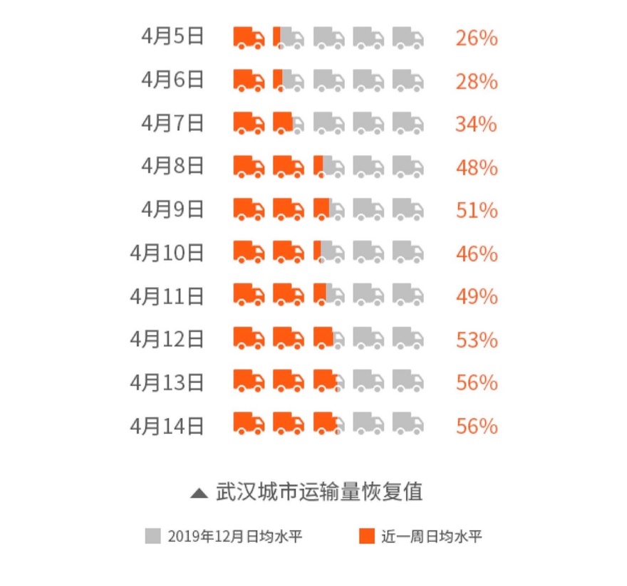 城市貨運(yùn)是城市經(jīng)濟(jì)發(fā)展的“晴雨表”。武漢解封后復(fù)工復(fù)產(chǎn)情況如何?全國各行業(yè)復(fù)工復(fù)產(chǎn)情況如何?貨量是否恢復(fù)到同期水平?卡車司機(jī)有多活躍?針對(duì)這些問題,霍拉拉發(fā)布了《4月8-14日城市貨運(yùn)大數(shù)據(jù)報(bào)告》,展現(xiàn)了后疫情時(shí)期的復(fù)工復(fù)產(chǎn)情況。