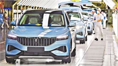 6月30日,智能新能源SUV藍(lán)途FREE在武漢經(jīng)濟(jì)技術(shù)開(kāi)發(fā)區(qū)藍(lán)途汽車(chē)智能制造基地生產(chǎn)線上。
