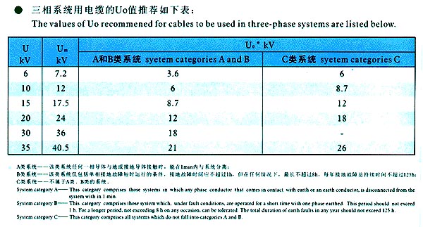 電纜的額定電壓應(yīng)適合于電纜系統(tǒng)的運(yùn)行狀況,用Uo/U(Um)kV表示。
